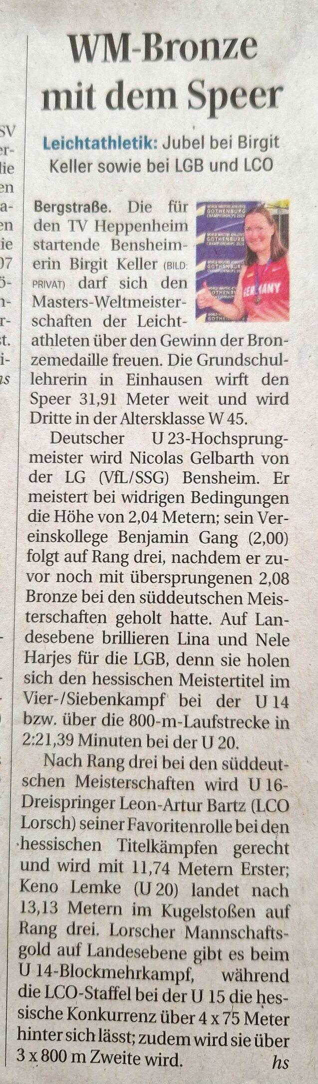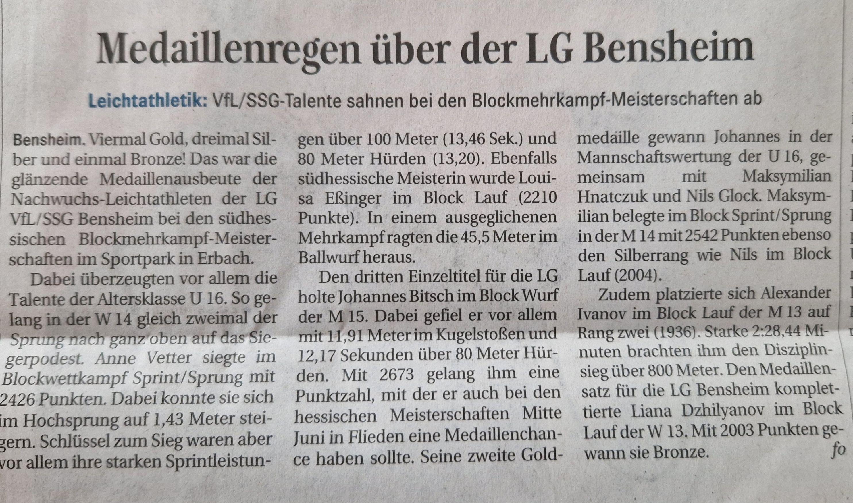 Die LG VfL SSG Bensheim freut sich, dass es auch 2024 wieder ein Athlet in den Hessischen Kader für den Ländervergleichskampf der U16 geschafft hat. Dieses Jahr wurde unser Athlet Lennox Veith aufgrund seiner sehr guten Leistungen im Speerwurf für den Ländervergleichskampf im bayrischen Hösbach nominiert. Für Lennox ist diese Nominierung eine Auszeichnung und eine Bestätigung seiner guten sportlichen Entwicklung.