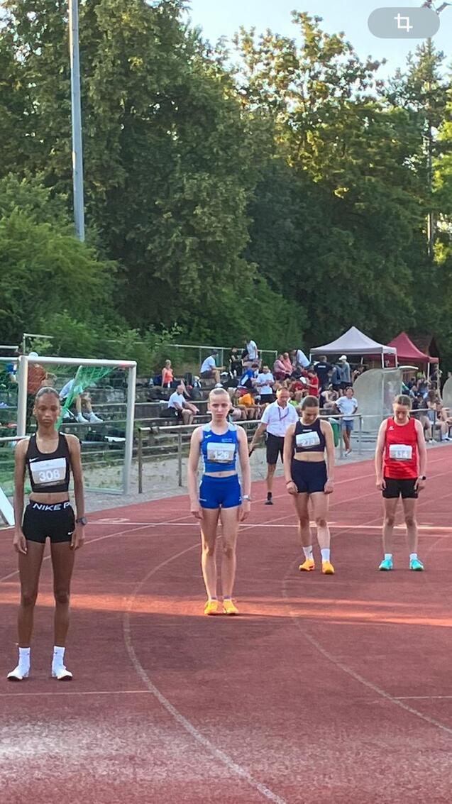 Den Anfang machteam Samstag Lina Harjes, die gleich im ersten Vorlauf der weiblichen Jugend 15 an den Start ging. Lina lief ihr bis dahin schnellstes Rennen und durfte sich nach 100 Metern über einen neuen LG-Rekord und eine neue pB freuen. Die Freude über die sehr gute Zeit von 12,63 Sekunden bei leichtem Rückenwind von 0,2 Metern pro Sekunde wurde leicht getrübt, da Lina nur 0,02 Sekunden zur Teilnahme am B-Finale fehlten. Am Ende war Lina dennoch mit der gelaufenen Zeit zufrieden, und sie hatte noch am darauffolgenden Sonntag eine weitere Möglichkeit, im Weitsprung ihr Können zu beweisen.