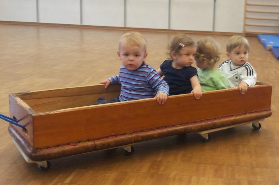 Alle wichtigen Bewegungsformen in diesem Alter werden geschult: Krabbeln, Laufen, Balancieren, Rutschen, Kriechen, Klettern, Steigen, sich Ziehen usw.! Wir nutzen sowohl alle Großgeräte der Halle wie auch Kleingeräte, also Bälle, Reifen, Stäbe, Säckchen usw. , wir spielen aber auch mit Alltagsmaterialien wie Plastikbechern, Korken, Kastanien…