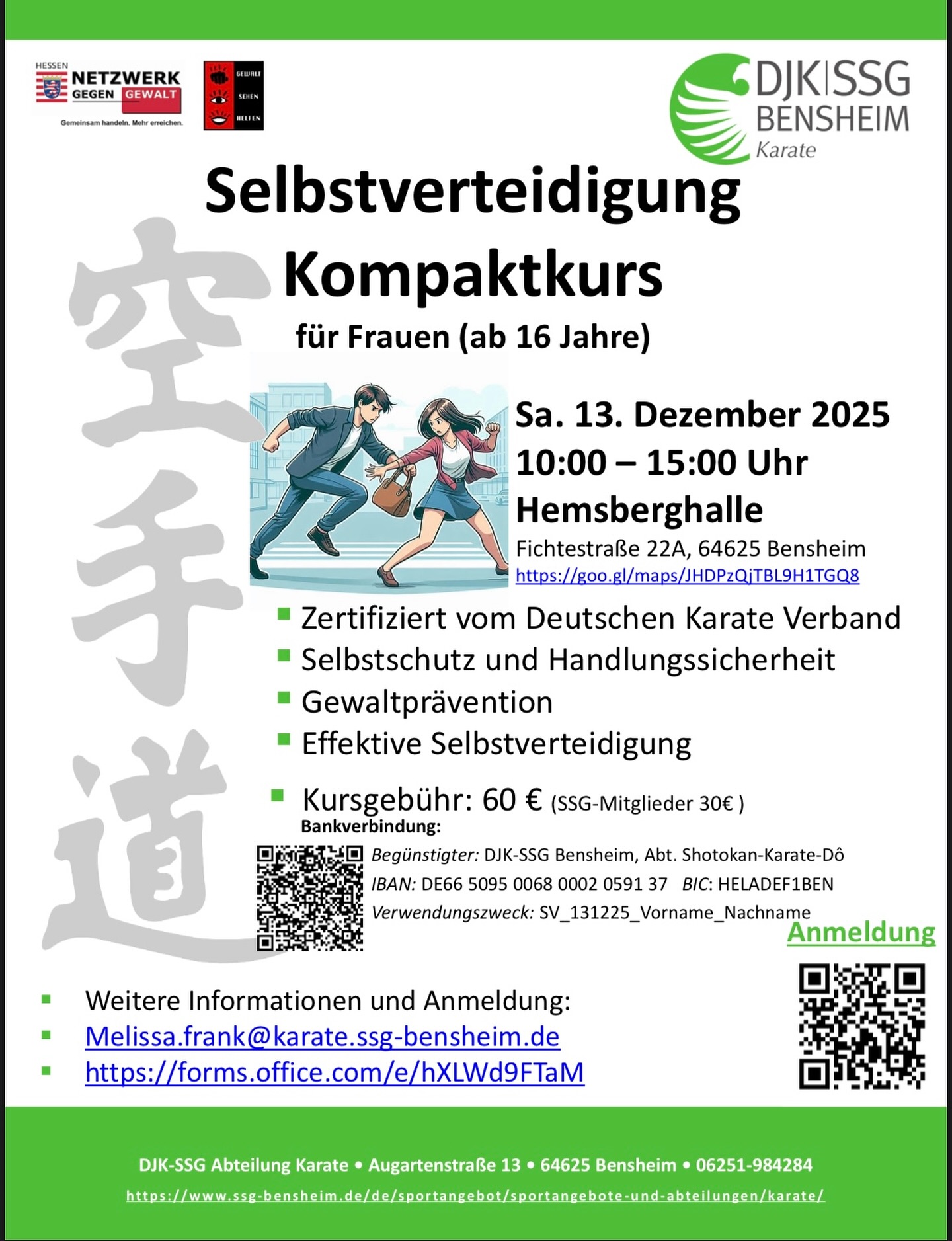 👉 Kosten: 60 € / SSG-Mitglieder: 30 € 💥 Stärke. Mut. Sicherheit.