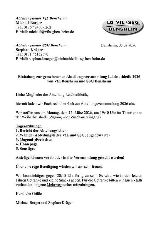 (Wissenswertes über die LG VfL/SSG Bensheim)