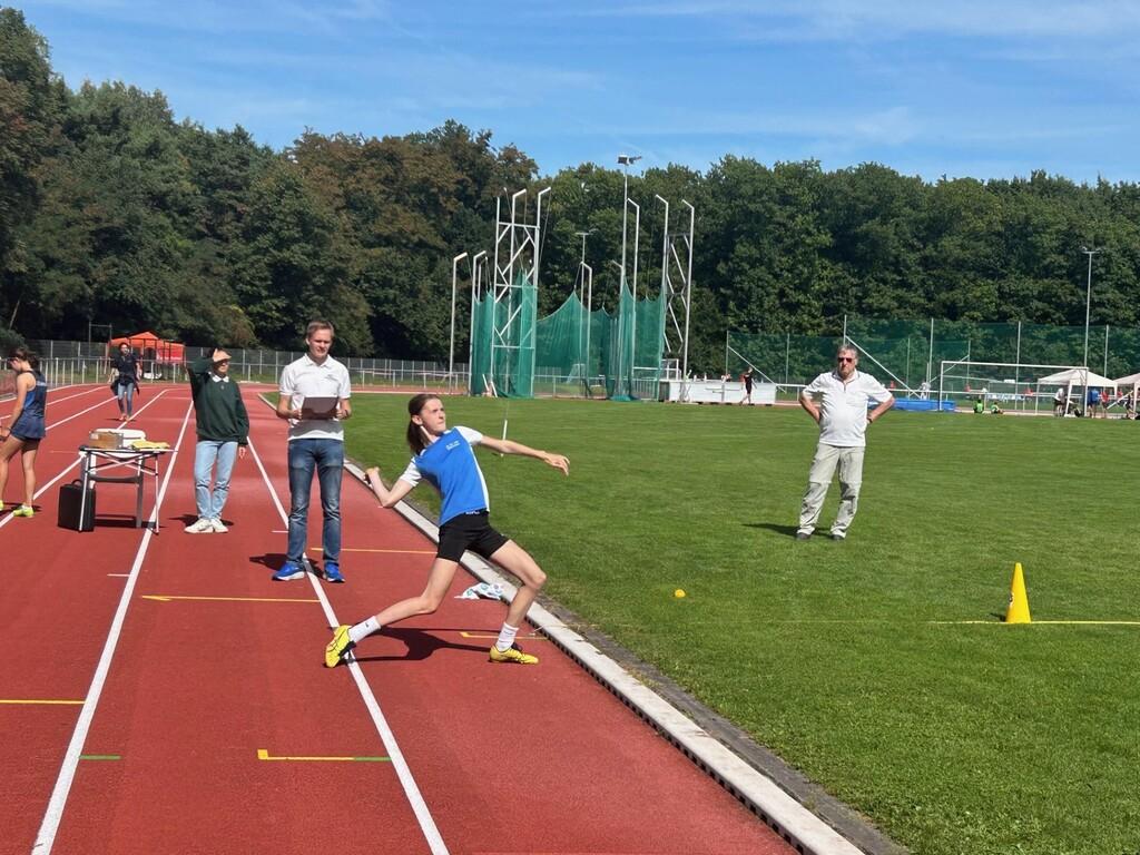 Im Siebenkampf zählt jede Disziplin, jeder Punkt. Am Samstagmittag, dem 30. August, fiel dann auch für Lina endlich der Startschuss. Den Auftakt machte der 80-Meter-Hürdensprint. Lina kam gut ins Rennen, „sie war brutal schnell unterwegs …“, so Trainer Michael Borger. Doch nach einem starken Beginn unterlief ihr ein folgenschwerer Fehler: Am Nachziehbein touchierte sie eine Hürde, kam zu Fall und wurde disqualifiziert. Damit war eine vordere Platzierung bereits früh außer Reichweite. Aufgeben kam für Lina jedoch nicht infrage. Im Speerwurf zeigte sie ihre Trainingsfortschritte der letzten Wochen: 28,48 Meter bedeuteten neue persönliche Bestleistung. Auch im Weitsprung war Lina stark unterwegs und landete mit 5,37 Metern knapp unter ihrer Bestmarke. Den Abschluss des ersten Wettkampftages bildete das Kugelstoßen – auch hier steigerte Lina ihre PB auf starke 11,14 Meter.
