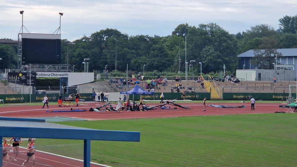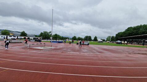 Am Sonntag, den 08. September 2024 sollten im Adam-Günderoth-Stadion in Lampertheim die Kreis-Mehrkampfmeisterschaften der Aktiven, Jugend und Kinder U12 stattfinden. Die Wettkämpfe begannen pünktlich um 10.00 Uhr mit dem Vierkampf der weiblichen und männlichen Jugend U14 (Jahrgänge 2011/2012). Unsere Athletinnen und Athleten starteten mit sehr guten Leistungen im Hochsprung in den Wettkampf, doch bereits während des Hochsprungs begann es zu nieseln. Der leichte Regen hörte glücklicherweise auf, doch leider nur um wenig später als richtiger Regen zurück zu kommen. Es konnten zwar in verschiedenen Altersklassen Wettbewerbe und Disziplinen angefenagen und durchgeführt werden, doch mehrfache Regenpausen bremsten den gesamten Wettkampf aus. Während eines weiteren heftigen Regenschauers entschied die Wettkampfleitung in Absprache mit den Trainern die Kreis-Mehrkampfmeisterschaften abzubrechen.