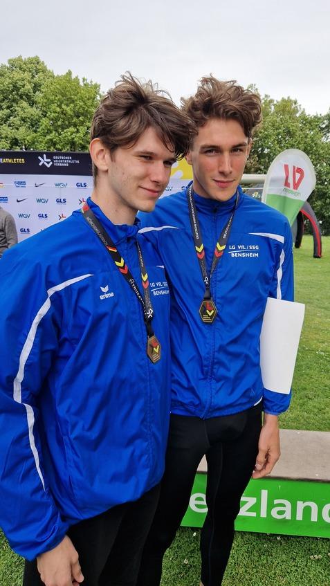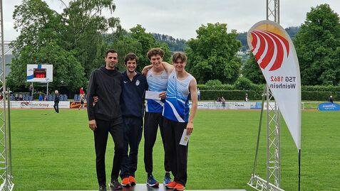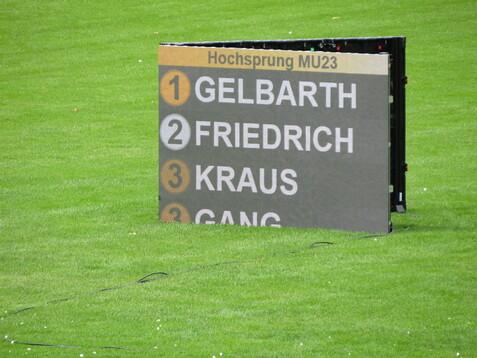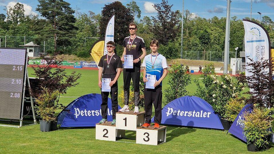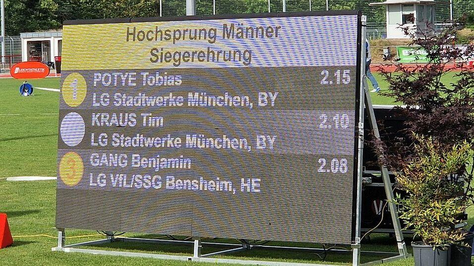 In diesem Wettkampf hatten Benjamin und Nico die exakt gleichen Werte/Leistungen abgeliefert. Beide LG Athleten stiegen bei 1,80 mtr. in den Wettkampf ein, hatten bei 1,93 Metern im 1. Sprung einen Fehlversuch und übersprangen die 1,96 Meter im 1. Versuch. Nach Absprache mit Trainer Markus Forster, einigte man sich darauf die 1,99 mtr. auszulassen und die nächste Höhe von 2,02 mtr. zu springen. Leider scheiterten beide Springer nur knapp an dieser Höhe, zeigten aber, dass diese dennoch zu meistern ist. Am Ende freuten sich die beiden Vereinskameraden über den gemeinsamen Platz 1.