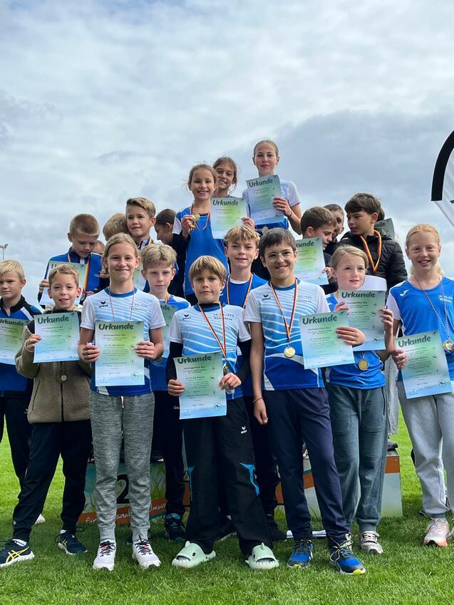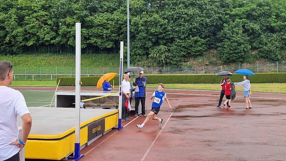 Die Trainerinnen und Trainer freuen sich mit den Athletinnen und Athleten über gute und sehr gute Ergebnisse am Saisonabschluss. So konnte der Vierkampf der männlichen Jugend M13 durchgeführt werden. Hier gewann unser Athlet Kjell Balitsch mit neuer persönlicher Bestleistung von 1600 Punketen (11,01 - 4,36 - 40,00 - 1,37). Auch die M14 konnte den Wettkampf beenden und Linus Busse schloß den Wettkampf mit 1116 Punkten auf dem Silberrang ab. Und bei der männlichen Jugend M15 durfte sich Johannes Bitsch mit 1557 Punkten über Platz 1 freuen. Hier wertete man den Vierkampf auf einen Dreikampf ab, da der Weitsprung nicht mehr durchgeführt werden konnte. Das gleiche tat die Wettkampfleitung bei der weiblichen Jugend W14. Ohne den Hochsprung durchzuführen gewann hier unsere Athletin Anne Vetter. Mit Anne auf dem Podest ist Louisa Eßinger auf dem dritten Platz.