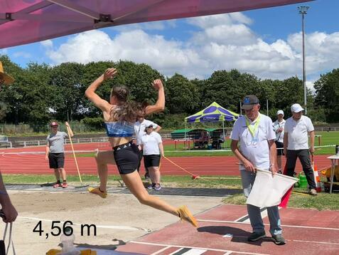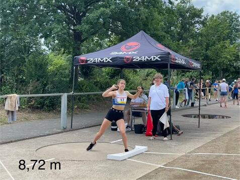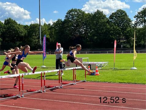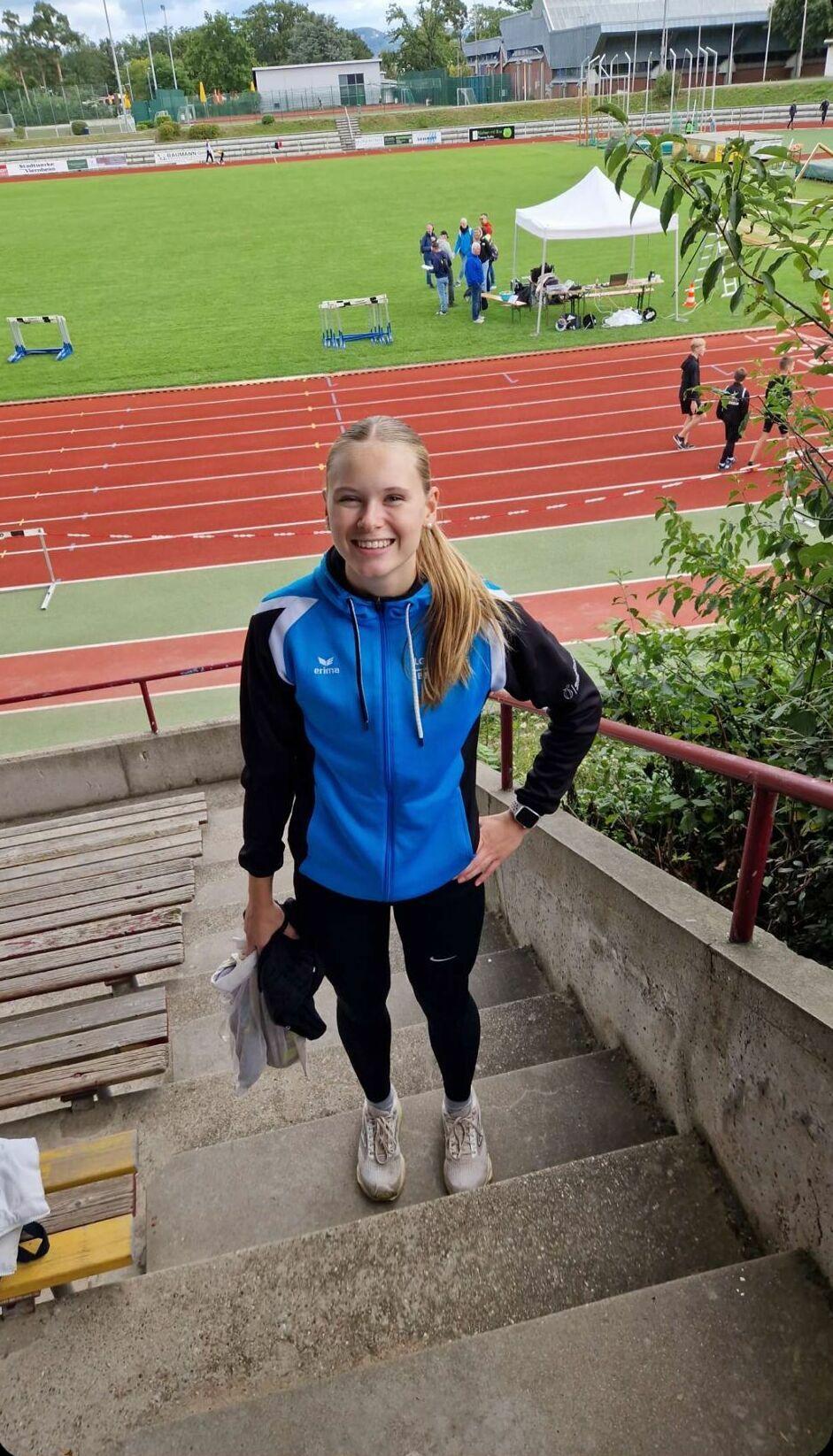 Bei den 80 Meter Hürden sprintete Lina mit 12,50 Sekunden zu einer neuen persönlichen Bestzeit. Dann kam der Hochsprung, wo Lina mit 1,49 Metern leider etwas hinter den eigenen Erwartungen zurückblieb. Als dritte Disziplin kam das Kugelstoßen. Hier wiederum konnte Lina mit 9,31 Metern eine weitere persönliche Bestleistung stoßen. Den abschließenden 100 Meter Lauf beendete Lina mit sehr guten 13,07 Sekunden.