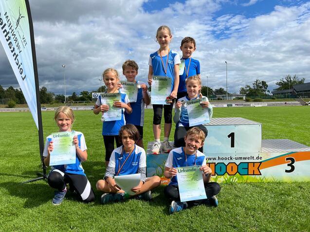 Den Anfang machte die Kinderleichtathletik. Hier starten Jungen und Mädchen als gemischte Mannschaft. Die Trainerinnen Ines Harjes und Liane Gang konnten jeweils eine Mannschaft bei der U12 (Jahrgang 2013/2014) und eine bei der U10 (Jahrgang 2015/2016) melden.