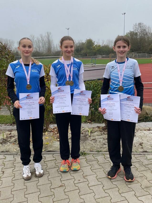 In der Riege der weiblichen Jugend W12/W13 (1.400m) starteten Elisabeth Sattler, Alisa Krafft und Carolin Streng. Elisabeth gewann hier die Wertung der W12 und ihre Vereinskameradin Alisa Krafft lief auf einen guten fünften Platz. Carolin Streng schaffte es auf Platz 9 der Wertung der W13. Gemeinsam wurden die drei Sportlerinnen als Mannschaft gewertet. Wegen der sehr guten Laufleistungen durften sich die Drei gemeinsam über den Titel in der Mannschaftswertung freuen.