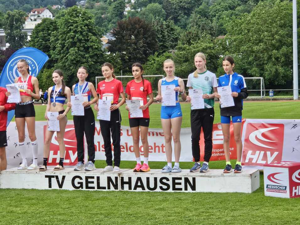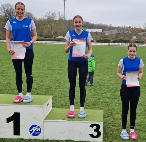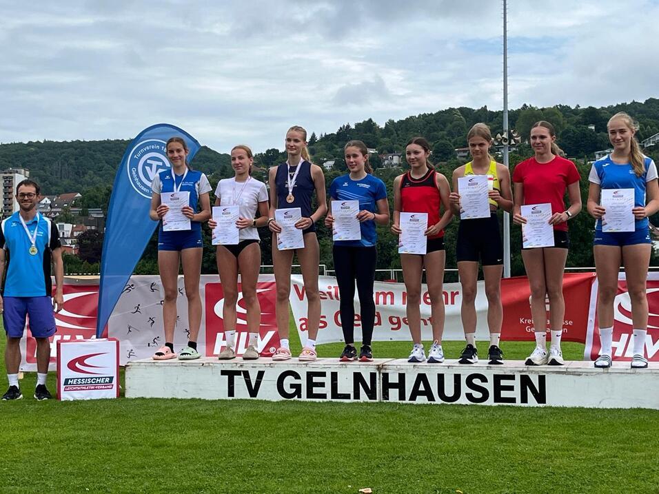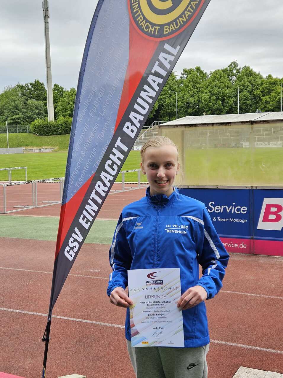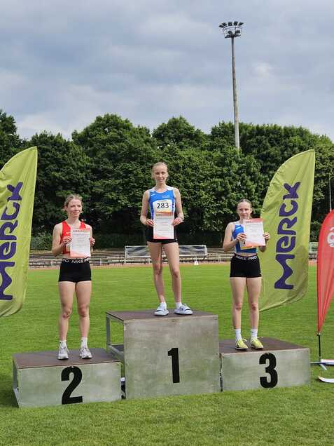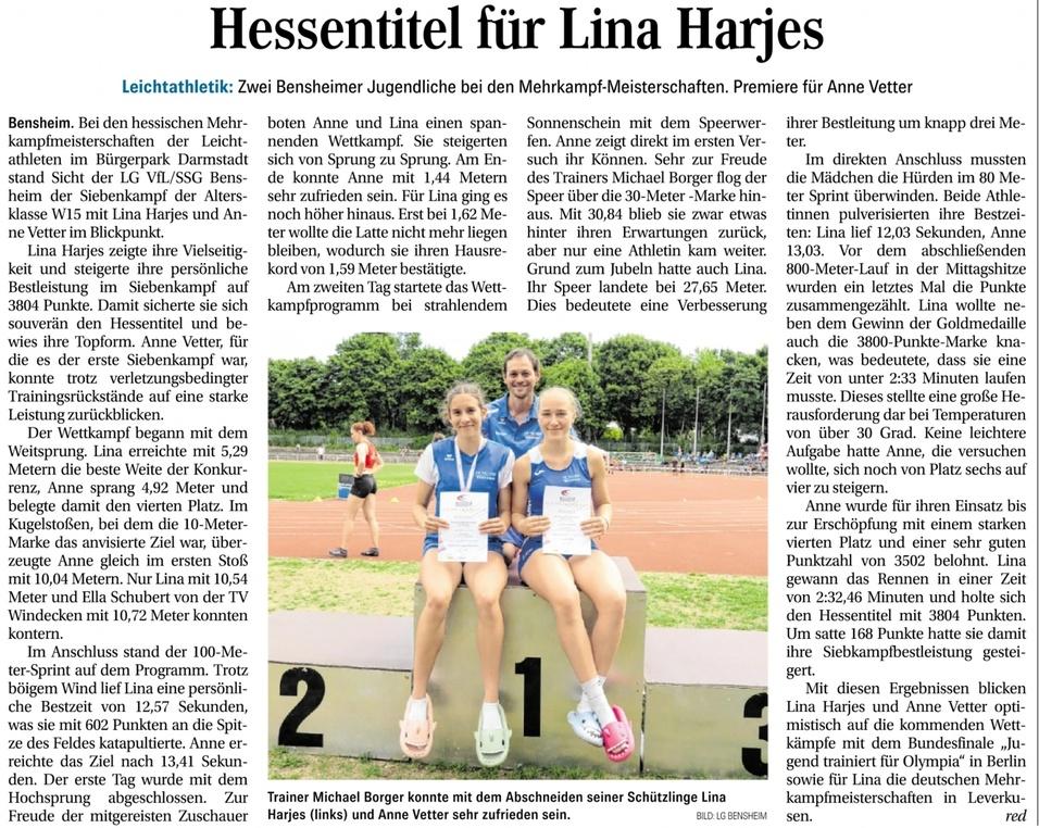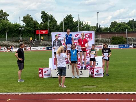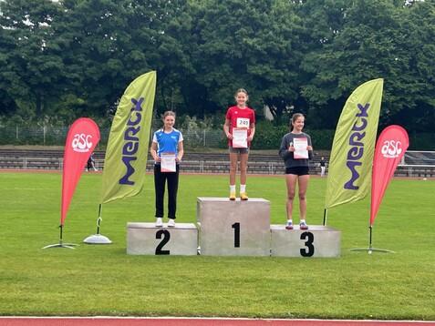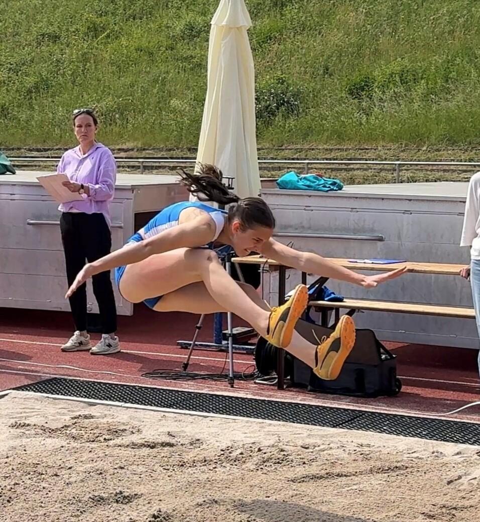 Eine dieser hervorragenden Leistungen gelang Lina Harjes in der W15 mit 5,56 Metern im Weitsprung. 5,56 waren nicht nur eine neue persönliche Bestleistung, sondern auch der Titel der Hessenmeisterin im Weitsprung. Aber diese Weite bedeutete auch, dass Lina damit einen neuen LG-Rekord aufstellte und die Norm für die Deutschen Meisterschaften im Weitsprung unterbot. Ebenfalls eine neue pB und zum ersten Mal über fünf Meter, sprang Anne Vetter im gleichen Wettkampf. Anne erreichte mit ihrem Sprung von 5,09 m, in einem sehr starken Teilnehmerfeld, einen sehr guten achten Platz.
