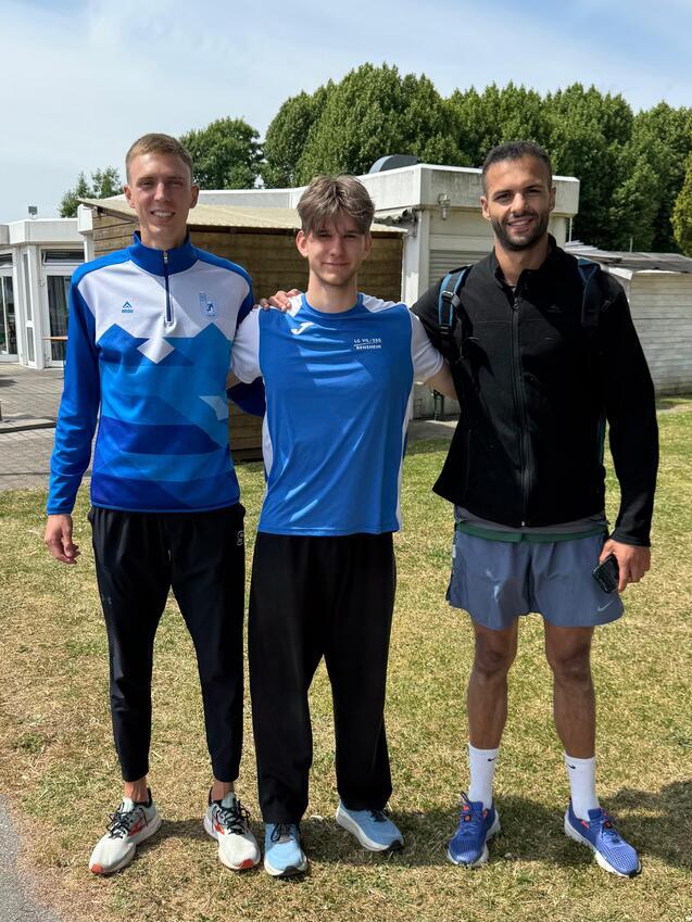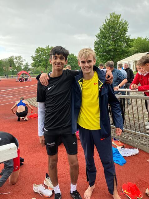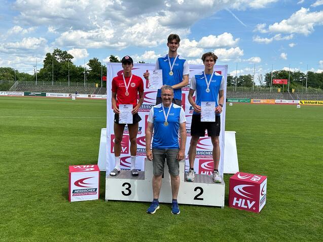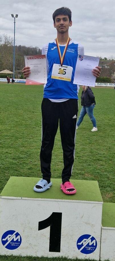 Am zweiten Tag der Hessischen Meisterschaften waren Nele Harjes, Sajeel Ahmad und Lennox Veith in Fulda im Einsatz. Aufgrund einer längeren Regenunterbrechung verschoben sich mehrere Disziplinen und der Regen sorgte auch nicht gerade für optimale Bedingungen, auch wenn der Veranstalter alles dafür tat den Athletinnen und Athleten die bestmöglichen Bedingungen zu schaffen. Los ging es dann für Sajeel Ahmad über die 800 m. Nach zwei Runden war es für Sajeel ein sehr guter dritter Platz und die Bronze Medaille über die er sich sehr freute. Nach Sajeel und der Männlichen Jugend U18 folgte Nele Harjes in ihrem Lauf über 800 m der Weiblichen Jugend U18. Auch hier hatte Nele, wie bereits am Tag zuvor, die schnellsten Meldezeit. Allerdings war für Nele die Konkurrenz wesentlich stärker als über die 1500. Doch am Ende schaffte Nele auch hier den Sieg und durfte sich erneut über einen Titel und die Goldmedaille freuen. Den Abschluss machte Lennox Veith im Speerwurf der Männlichen Jugend U18. Lennox hatte es mit einer richtig starker Konkurrenz zu tun. Nach den ersten drei Versuchen stand fest, dass Lennox ins Finale der besten Acht einzog und weitere drei Versuche bekam. Am Ende eines langen Wettkampfs stand für ihn ein sehr guter 4. Platz mit einer Tagesbestweite von 46,85 m. Die Plätze 1 bis 3 gingen an Speerwerfer, die, im Gegensatz zu Lennox, bereits im zweiten Jahr U18 sind und über 50 bzw. 60 Meter werfen können.