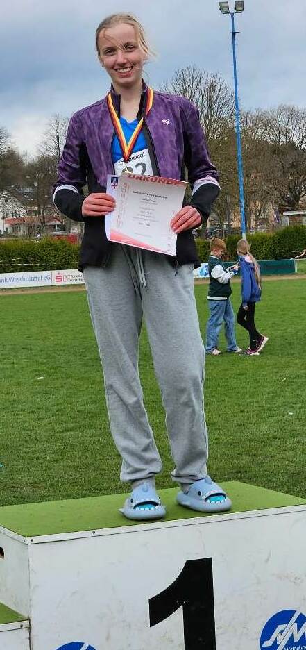 Eine dritte Disziplin gab es für die Mehrkämpferin Lina Harjes, die noch in der Hochsprung Konkurrenz antrat. Nach dem hervorragenden Weitsprung war es dann im Hochsprung noch ein guter Fünfter Platz mit übersprungenen 1,50 m für Lina.
