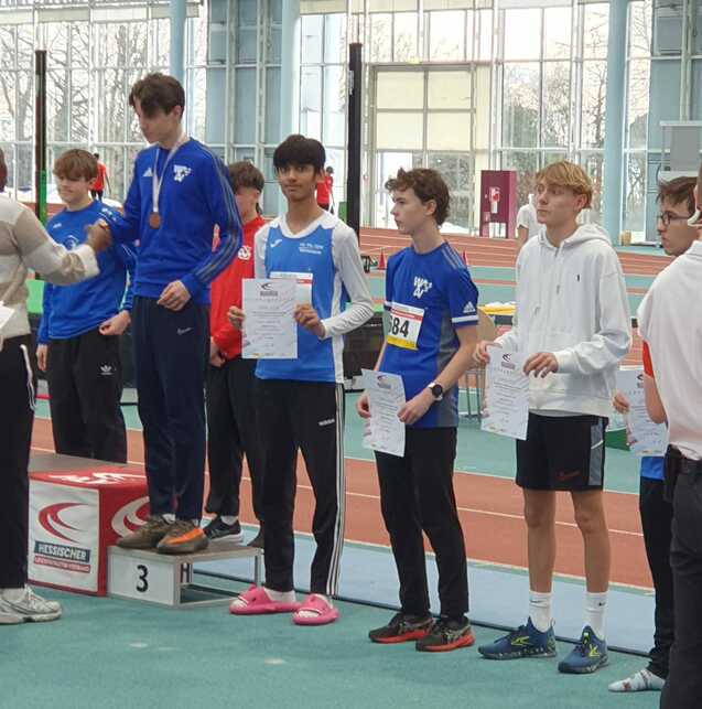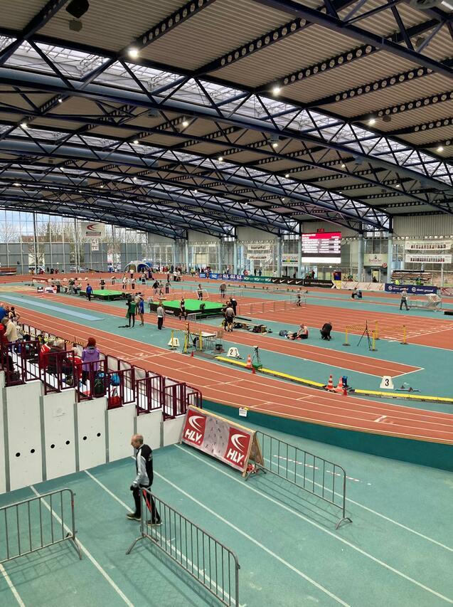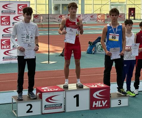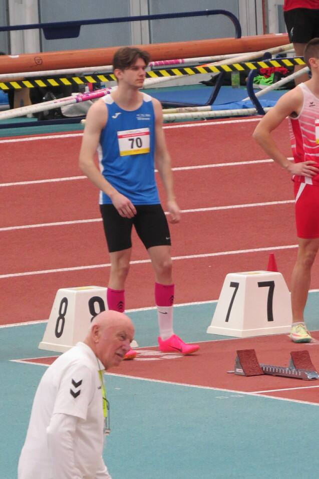 Der erste Wettkampf mit LG-Beteiligung war der Sprint über 60 Meter der männlichen Jugend M15. In fünf Vorläufen wurden die besten 16 Sprinter gesucht, die dann in die Zwischenläufe einziehen sollten. Qualifiziert hatten sich die fünf Laufsieger sowie die elf Zeitschnellsten aller Läufe. Hier gewann Maksymilian Hnatczuk seinen Lauf mit persönlicher Bestleistung (pB) von 7,58 Sekunden und zog damit in den Zwischenlauf ein. Im Zwischenlauf konnte Maksymilian seine neue pB bestätigen und wurde Laufzweiter und war damit Teilnehmer des Endlaufs. Im Finale war es dann der dritte Platz und Maksymiliam durfte sich über eine Bronze Medaille freuen.