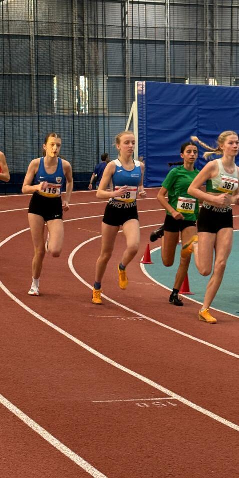 Zwischen den Halbfinal- und Finalläufen der Sprinterinnen stand am Samstagabend das Finale über 1.500 Meter der weiblichen U18 an. Nele Harjes hatte auf den Start über 800 Meter verzichtet, um sich voll auf dieses Finale zu konzentrieren – eine kluge Entscheidung. In einem von Beginn an schnellen Rennen setzte sich früh eine Spitzengruppe ab. Nele kämpfte sich mutig durch das Feld und versuchte den Kontakt mit der erweiterten Spitze zu halten. Am Ende überquerte sie als Zehnte die Ziellinie – mit 4:47,37 Minuten stellte sie erneut eine persönliche Bestzeit und Vereinsrekord auf. Zwei Läufe, zwei Rekorde – ein Wochenende, das sie so schnell nicht vergessen wird.