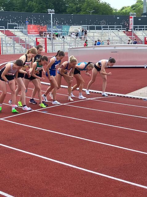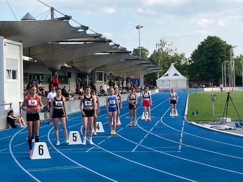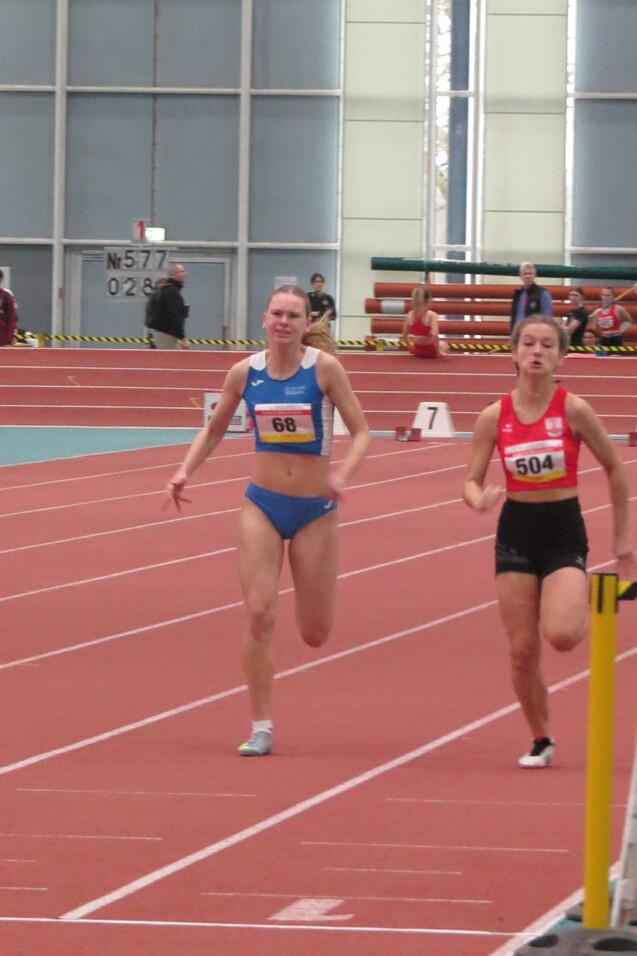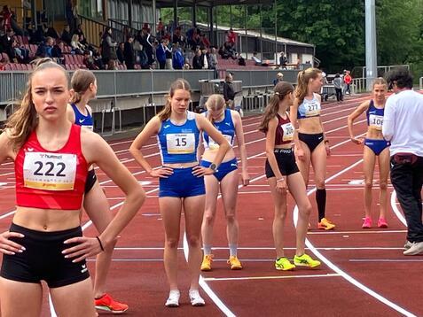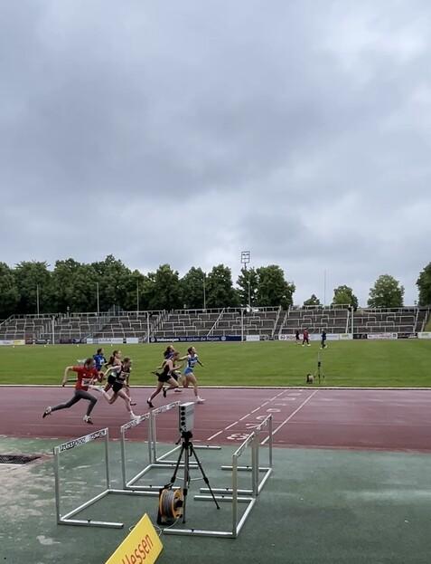 Den Anfang machte Mehrkämpferin Lina Harjes, die sich aufgrund ihrer guten Leistungen für die Teilnahme am Hürdensprint der W15 qualifiziert hatte. Lina gelang in ihrem Vorlauf über die 80 Meter gleich eine persönliche Bestleistung und einen neuen Vereinsrekord mit 12,20 Sekunden aufzustellen. Als Gewinnerin ihres Vorlaufs qualifizierte sich Lina für das Finale. Im Finale gelang ihr ein fast ebenso guter Lauf, der mit 12,27 Sekunden nur unwesentlich langsamer war. Mit einem sehr guten Platz fünf im Finale durfte Lina sehr zufrieden sein.