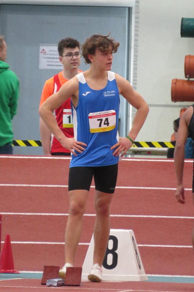 Der Samstag war der Tag der Sprinter. Über die 60-Meter-Strecke waren Marlena Bestian, Benjamin Gang, Nick Schrettlinger und Lennox Veith gemeldet. Den Anfang machten die Sprinter der männlichen Jugend U18. Im dritten von sechs Vorläufen ging Lennox Veith an den Start. Mit einer Zeit von 8,06 Sek. durfte sich Lennox über eine neue persönliche Bestleistung (pB) freuen, aber für die Zwischenläufe reichte diese Zeit leider nicht. Besser lief es bei Nick Schrettlinger, der einen Lauf später als Lennox über die Strecke ging. Nick wurde in seinem Lauf mit einer neuen pB von 7,42 Zweiter und qualifizierte sich für den Zwischenlauf. Eine gute Stunde später konnte Nick seine neue pB bestätigen. Wieder lautete der Zeit 7,42 Sek. Als Neunter der 24 Starter im Zwischenlauf verpasste Nick das Finale nur um 0,02 Sekunden.