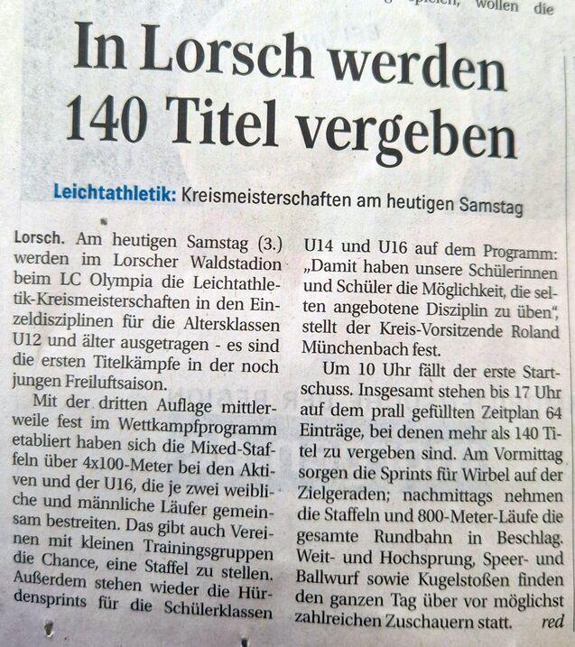 | 19.07.2025 - 20.07.2025 | Hessische Meisterschaften Mehrkampf (Darmstadt) |