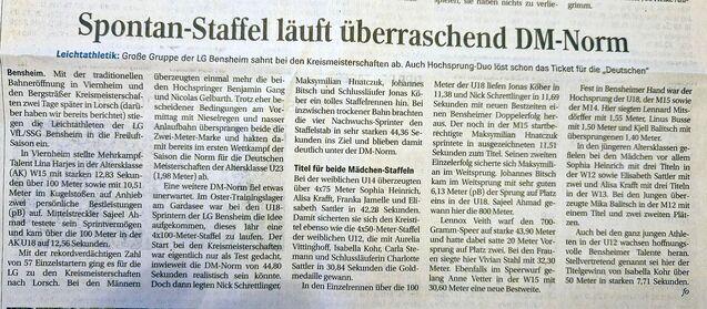 Den Abschluss machten die Staffeln. Die Hessenmeister-Staffel der LG Bensheim, bereits für die DM qualifiziert, wollte hier unter Wettkampfbedingungen laufen, die Form testen und möglichst aufs Podest laufen. Zugunsten der Staffel verzichtete Nick Schrettlinger sogar auf den Einzelstart über die 100 Meter. In der Bestzung Nick Schrettlinger, Johannes Bitsch, Maksymilian Hnatczuk und Jonas Köber ging man an den Start. Leider kam es im Laufe des Rennens zu einem Wechselfehler und der entsprechenden Disqualifikation. Nun gilt es im Training weiter zu arbeiten um bei der Deutschen Meisterschaft ein Top Rennen zu zeigen.