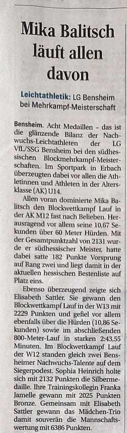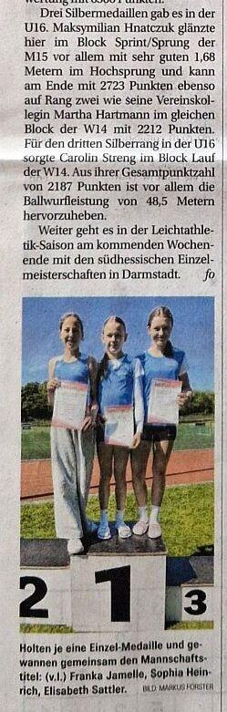 1. Platz Südhessische Blockmehrkampfmeisterschaft, Lauf 25.05.24 Erbach