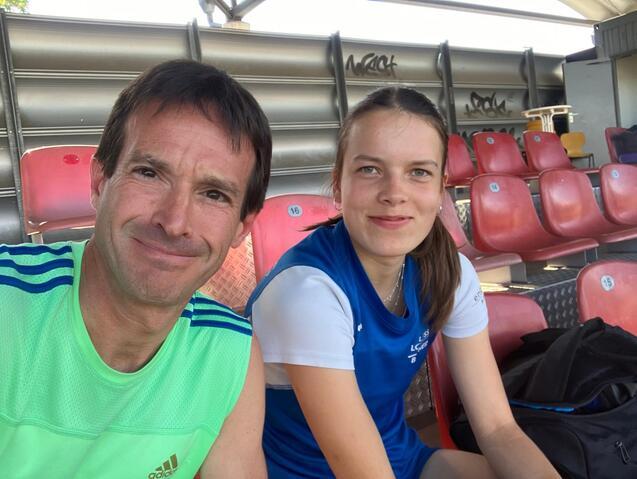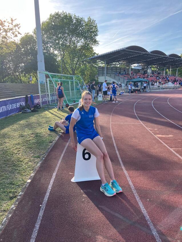 Am Sonntagvormittag hatte Lina Harjes ihren zweiten Auftritt im Ulmer Donaustadion. Im Weitsprung der weiblichen Jugend 15 ist die Leistungsdichte extrem eng, sodass für fast alle Teilnehmerinnen eine Platzierung von Platz eins bis Platz zehn möglich war. Lina musste in diesem Wettkampf in jedem Sprung alles geben und viel riskieren, um in die Top Acht zu kommen. Mit 5,22 Metern im ersten Versuch setzte sie sich gleich an die Spitze des Feldes. Diese Position zu verteidigen, sollte nicht einfach werden, denn die Konkurrentinnen fanden immer besser in den Wettkampf. Nach den ersten drei Versuchen rutschte Lina auf Platz acht ab, aber dieser Platz reicht bekanntlich, um ins Finale einzuziehen. Im Finale hatte Lina dann drei weitere Versuche, um im Klassement weiter nach vorne zu springen. Im fünften Versuch waren es dann die 5,32 Meter, die reichten, um sich zu verbessern. Im sechsten und letzten Versuch riskierte Lina noch einmal alles, um sich den einen oder anderen Platz nach vorne zu schieben. Leider war der Versuch nicht von Erfolg gekrönt, und Linas Sprung war ungültig – eine Verbesserung war nicht mehr möglich. Am Ende jedoch freuten sich Lina und Trainer Michael Borger über einen sehr guten siebten Platz. Lina hat dieses Jahr als Siebenkämpferin noch die Teilnahme an den Deutschen Meisterschaften der Mehrkämpfer in Leverkusen und die Hessischen Meisterschaften vor sich und kann hier weitere gute Leistungen zeigen.