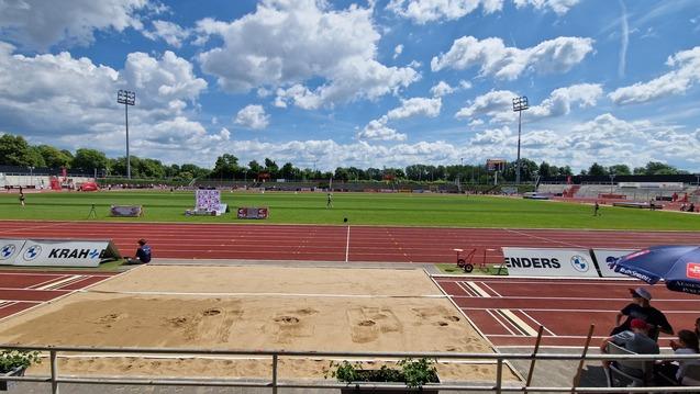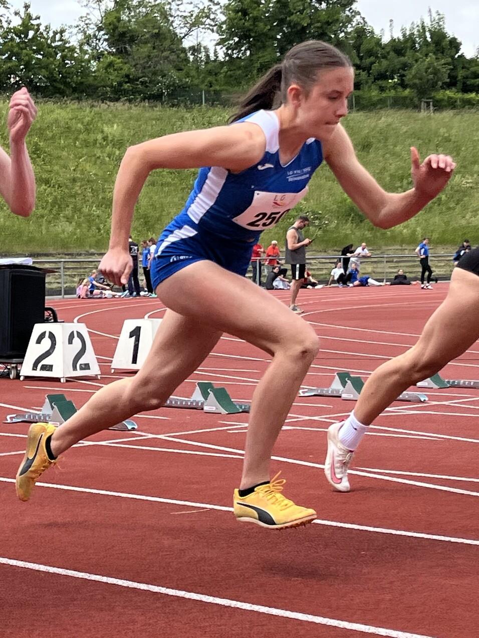 Den Anfang machteam Samstag Lina Harjes, die gleich im ersten Vorlauf der weiblichen Jugend 15 an den Start ging. Lina lief ihr bis dahin schnellstes Rennen und durfte sich nach 100 Metern über einen neuen LG-Rekord und eine neue pB freuen. Die Freude über die sehr gute Zeit von 12,63 Sekunden bei leichtem Rückenwind von 0,2 Metern pro Sekunde wurde leicht getrübt, da Lina nur 0,02 Sekunden zur Teilnahme am B-Finale fehlten. Am Ende war Lina dennoch mit der gelaufenen Zeit zufrieden, und sie hatte noch am darauffolgenden Sonntag eine weitere Möglichkeit, im Weitsprung ihr Können zu beweisen.