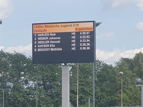 Am Sonntag war dann noch Nele Harjes für die LG Bensheim am Start. Für Nele ging es darum bei großer Hitze über 1500 Meter eine möglichst gute Platzierung zu erlaufen. In einem taktischen Rennen in dem es den Top Läuferinnen nur um die Platzierungen ging, waren keine neuen Bestzeiten zu erwarten. Nele lief die 3 1/2 Runden in 4:51,88 und belohnte sich mit einem sehr guten fünften Platz.