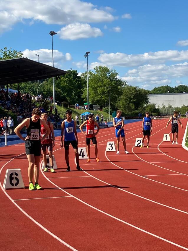Aufgrund von Verletzungen mussten die beiden, für die Aktiven, gemeldeten Sprinterinnen Pia Pätzel und Marlena Bestian leider passen. Im Bereich der Männlichen Jugend allerdings gingen die Sprinter Nick Schrettlinger, Jonas Köber und Johannes Bitsch für Bensheim an den Start. In fünf Vorläufen galt es sich für die Zwischenläufe zu qualifizieren. Bei 40 Startern musste man seinen Lauf gewinnen oder unter den 19 Zeitbesten sein. Gleich im ersten waren Jonas Köber und Johannes Bitsch am Start und beide konnten sich über die Zeit qualifizieren. Nick Schrettlinger musste bis zum Vorlauf Nr. 4 warten, aber auch er konnte sich über die Zeit qualifizieren. Dann hieß es für die Drei bei warmem und sonnigem Wetter erst einmal warten und und die Spannung aufrecht halten. Sehr ärgerlich war es dann, als man erfuhr, dass alle drei Bensheimer Sprinter in den ersten Zwischenlauf gesetzt wurden. Bei drei Zwischenläufen qualifizierten sich die jeweils zwei besten eines jeden Laufs und die zwei Zeitschnellsten aller drei Läufe. So kam es, dass sich letztlich nur Jonas Köber als Lauf-Zweiter durchsetzen und fürs Finale qualifizieren konnte. Eine weitere Stunde später stand das Finale an in dem Jonas einen guten achten Platz, bei extrem starker Konkurrenz, ersprinten konnte.