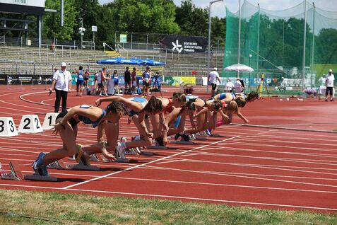 Den Anfang machteam Samstag Lina Harjes, die gleich im ersten Vorlauf der weiblichen Jugend 15 an den Start ging. Lina lief ihr bis dahin schnellstes Rennen und durfte sich nach 100 Metern über einen neuen LG-Rekord und eine neue pB freuen. Die Freude über die sehr gute Zeit von 12,63 Sekunden bei leichtem Rückenwind von 0,2 Metern pro Sekunde wurde leicht getrübt, da Lina nur 0,02 Sekunden zur Teilnahme am B-Finale fehlten. Am Ende war Lina dennoch mit der gelaufenen Zeit zufrieden, und sie hatte noch am darauffolgenden Sonntag eine weitere Möglichkeit, im Weitsprung ihr Können zu beweisen.