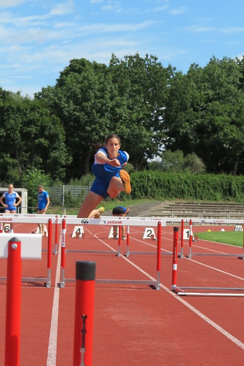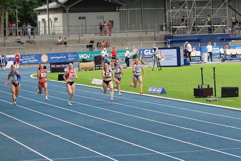 Den Anfang machte Mehrkämpferin Lina Harjes, die sich aufgrund ihrer guten Leistungen für die Teilnahme am Hürdensprint der W15 qualifiziert hatte. Lina gelang in ihrem Vorlauf über die 80 Meter gleich eine persönliche Bestleistung und einen neuen Vereinsrekord mit 12,20 Sekunden aufzustellen. Als Gewinnerin ihres Vorlaufs qualifizierte sich Lina für das Finale. Im Finale gelang ihr ein fast ebenso guter Lauf, der mit 12,27 Sekunden nur unwesentlich langsamer war. Mit einem sehr guten Platz fünf im Finale durfte Lina sehr zufrieden sein.