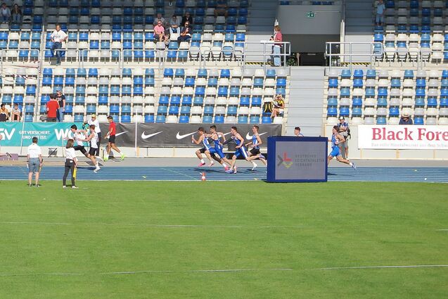 Das zweite Highlight des Tages lieferte die männliche 4×100-Meter-Staffel der U18 – bestehend aus Nick Schrettlinger, Maksymilian Hnatczuk, Johannes Bitsch und Jonas Köber. Das Quartett hatte sich mit einer starken Zeit im Vorfeld für die Meisterschaften qualifiziert – und wollte sich nun auf der großen Bühne beweisen. Im dritten Zeitlauf traf das Team auf harte Konkurrenz. Die Wechsel klappten reibungslos, die Laufleistung aller vier Sprinter war beeindruckend. Mit 43,41 Sekunden unterboten sie nicht nur ihre bisherige Bestmarke, sondern stellten gleichzeitig einen neuen Vereinsrekord auf. In der Endabrechnung bedeutete dies Rang 11 von insgesamt 29 Staffeln – ein großartiges Ergebnis, vor allem wenn man bedenkt, dass Platz acht nur 0,23 Sekunden entfernt war. Der verdiente Lohn für konzentriertes Training und engagiertes Teamwork.