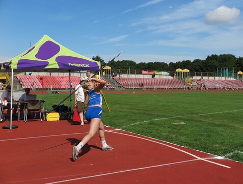 Am zweiten Tag der Hessischen Meisterschaften waren Nele Harjes, Sajeel Ahmad und Lennox Veith in Fulda im Einsatz. Aufgrund einer längeren Regenunterbrechung verschoben sich mehrere Disziplinen und der Regen sorgte auch nicht gerade für optimale Bedingungen, auch wenn der Veranstalter alles dafür tat den Athletinnen und Athleten die bestmöglichen Bedingungen zu schaffen. Los ging es dann für Sajeel Ahmad über die 800 m. Nach zwei Runden war es für Sajeel ein sehr guter dritter Platz und die Bronze Medaille über die er sich sehr freute. Nach Sajeel und der Männlichen Jugend U18 folgte Nele Harjes in ihrem Lauf über 800 m der Weiblichen Jugend U18. Auch hier hatte Nele, wie bereits am Tag zuvor, die schnellsten Meldezeit. Allerdings war für Nele die Konkurrenz wesentlich stärker als über die 1500. Doch am Ende schaffte Nele auch hier den Sieg und durfte sich erneut über einen Titel und die Goldmedaille freuen. Den Abschluss machte Lennox Veith im Speerwurf der Männlichen Jugend U18. Lennox hatte es mit einer richtig starker Konkurrenz zu tun. Nach den ersten drei Versuchen stand fest, dass Lennox ins Finale der besten Acht einzog und weitere drei Versuche bekam. Am Ende eines langen Wettkampfs stand für ihn ein sehr guter 4. Platz mit einer Tagesbestweite von 46,85 m. Die Plätze 1 bis 3 gingen an Speerwerfer, die, im Gegensatz zu Lennox, bereits im zweiten Jahr U18 sind und über 50 bzw. 60 Meter werfen können.