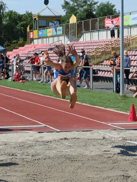 Am Sonntagvormittag hatte Lina Harjes ihren zweiten Auftritt im Ulmer Donaustadion. Im Weitsprung der weiblichen Jugend 15 ist die Leistungsdichte extrem eng, sodass für fast alle Teilnehmerinnen eine Platzierung von Platz eins bis Platz zehn möglich war. Lina musste in diesem Wettkampf in jedem Sprung alles geben und viel riskieren, um in die Top Acht zu kommen. Mit 5,22 Metern im ersten Versuch setzte sie sich gleich an die Spitze des Feldes. Diese Position zu verteidigen, sollte nicht einfach werden, denn die Konkurrentinnen fanden immer besser in den Wettkampf. Nach den ersten drei Versuchen rutschte Lina auf Platz acht ab, aber dieser Platz reicht bekanntlich, um ins Finale einzuziehen. Im Finale hatte Lina dann drei weitere Versuche, um im Klassement weiter nach vorne zu springen. Im fünften Versuch waren es dann die 5,32 Meter, die reichten, um sich zu verbessern. Im sechsten und letzten Versuch riskierte Lina noch einmal alles, um sich den einen oder anderen Platz nach vorne zu schieben. Leider war der Versuch nicht von Erfolg gekrönt, und Linas Sprung war ungültig – eine Verbesserung war nicht mehr möglich. Am Ende jedoch freuten sich Lina und Trainer Michael Borger über einen sehr guten siebten Platz. Lina hat dieses Jahr als Siebenkämpferin noch die Teilnahme an den Deutschen Meisterschaften der Mehrkämpfer in Leverkusen und die Hessischen Meisterschaften vor sich und kann hier weitere gute Leistungen zeigen.