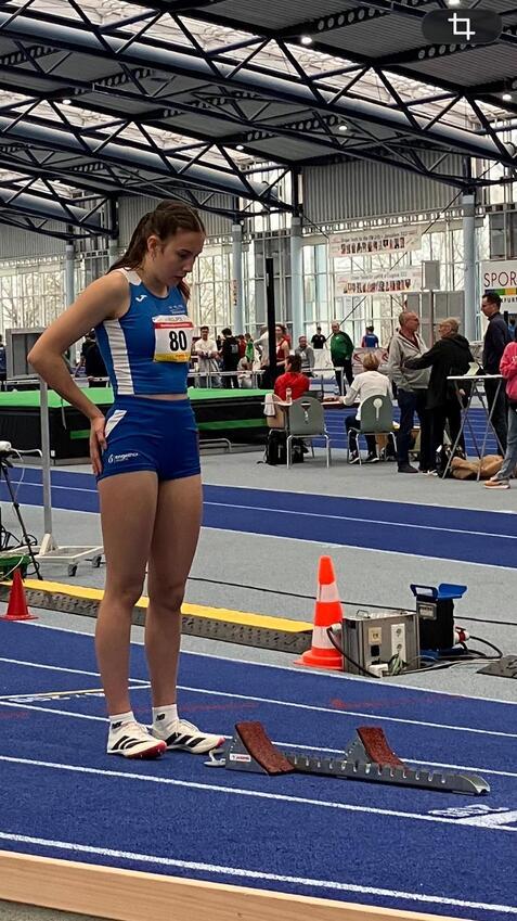 Für Elisabeth war der Sprint bereits der zweite Einsatz an diesem Wettkampftag. Zuvor eröffnete sie aus Bensheimer Sicht den Tag im Weitsprung. Da ihr letzter Wettkampf in dieser Disziplin einige Monate zurücklag, lag der Fokus gemeinsam mit Trainer Michael Borger zunächst darauf, während des kurzen Einspringens einen passenden Anlauf zu finden. Nach einem übertretenen ersten Versuch gelang Elisabeth im zweiten Sprung mit 4,11 Metern eine gültige Weite. Der dritte Versuch hätte deutlich weiter ausfallen können, war jedoch erneut knapp ungültig.